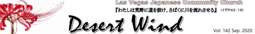 ラスベガス日本人教会 DesertWind・ニュースレター September, 2020 『主のわざに励みなさい』(第一コリント15:57-58) LVJCC 牧師:鶴田健次 人生において、イエス・キリストを信じ、神様の子供になること以上に大きな祝福はありません。罪のために永遠の滅びが定められていた者が、イエス様を信じることによってContinue reading